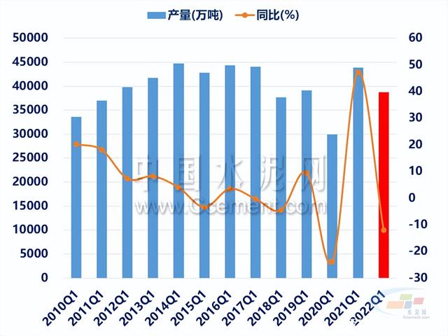 一季度水泥需求延續(xù)去年四季度以來(lái)的弱勢(shì),水泥產(chǎn)量3.9億噸,同比下降12.1%,成為2018年(2020年除外)以來(lái)的新低,在近十年中處于較低的位置。